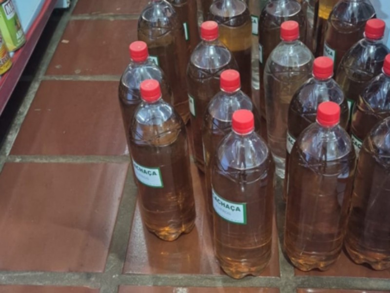Nos seis estabelecimentos fiscalizados, foram encontrados produtos coloniais sem indicação de procedência, entre eles, cachaça e vinho, mercadorias vencidas, sem origem, com problemas de rotulagem e fora da temperatura adequada. Além disso, álcool de venda proibida em mercados e medicamentos.
