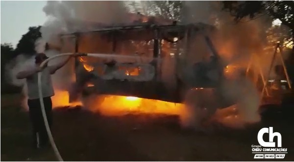 Fogo destrói micro-ônibus em Palmitinho