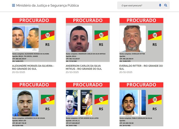 O Ministério da Justiça e Segurança Pública informou que o site faz parte do Programa Captura, que é uma ação de articulação nacional voltada à identificação, localização e prisão de criminosos considerados de alta periculosidade.