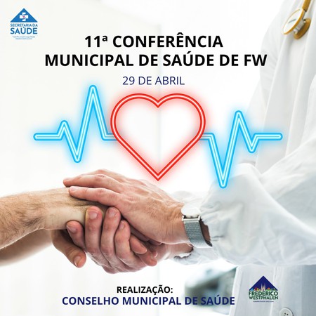 O Conselho Municipal de Saúde, com apoio da Secretaria Municipal da Saúde promoverá no próximo dia 29 de abril, a 11ª Conferência Municipal de Saúde, um dos mais importantes espaços de debate e construção coletiva de políticas públicas na área da saúde. O evento ocorrerá a partir das 13 horas, no Sindicato dos Trabalhadores Rurais, localizado na Rua José Canellas, no centro da cidade.