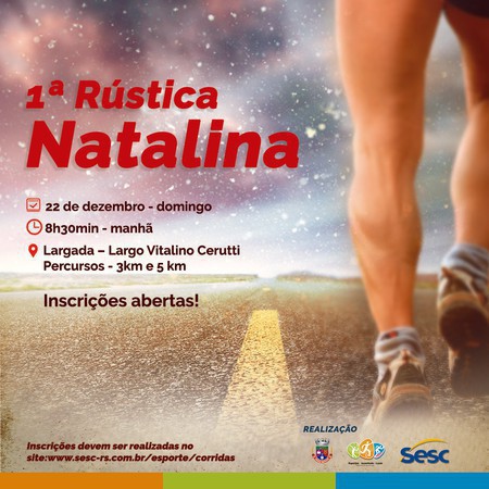 Uma das novidades do Frederico em Luz é a 1º Rústica Natalina, o evento ocorrerá no dia 22 de dezembro, às 8h30min, com largada no Largo Vitalino Cerutti.