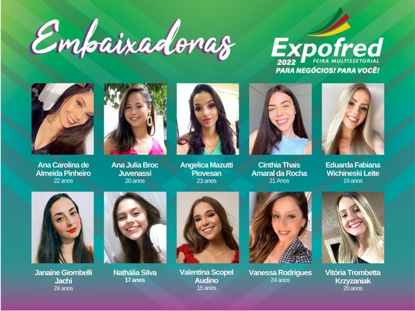 Neste período de preparação para a Expofred 2022, diversas ações para divulgação da feira estão sendo realizadas pelas Embaixadoras: 10 meninas que se disponibilizaram de forma voluntária para fazer parte da feira e atuar na divulgação e promoção do evento.