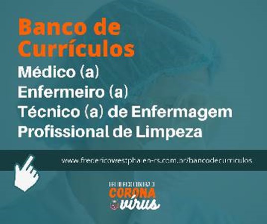 A Administração Municipal, juntamente com o Centro de Operações de Emergências (COE) e o Gabinete Municipal de Prevenção e Enfrentamento ao Coronavírus, de Frederico Westphalen, estão disponibilizando para profissionais da área da saúde, um banco para cadastro de currículo.