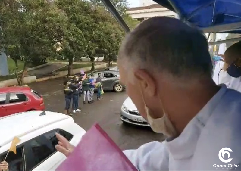 Já em Palmeira das Missões a manhã do feriado iniciou com carreata pelas principais ruas da cidade, até a frente da igreja matriz onde os carros e as famílias receberam a bênção.