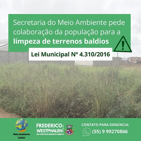 O município possui cerca de 4,7 mil terrenos baldios, um número elevado, que dificulta a fiscalização. Desta forma, a Secretaria pede a colaboração de toda população na conservação e manutenção desses locais de modo a não comprometer a saúde pública, assim como ressalta a existência de uma Lei Municipal, de Nº 4.310/2016, que prevê a aplicação de multa em caso de irregularidade.