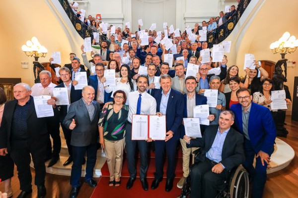 O governo do Estado assinou, nesta quinta-feira (14/12), convênios com os 202 municípios selecionados no programa RS Qualificação, iniciativa da Secretaria de Trabalho e Desenvolvimento Profissional (STDP). O ato, realizado no salão Negrinho do Pastoreio, do Palácio Piratini, formaliza o investimento de R$ 14,1 milhões para oferta de cursos de capacitação e formação profissional.