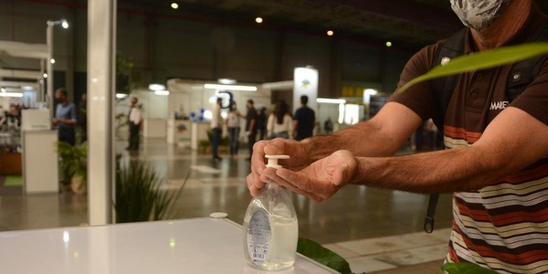 • Disponibilização de álcool em gel em diferentes locais, para uso de trabalhadores e público