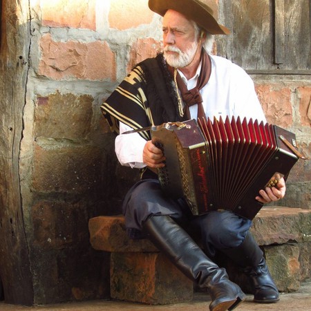 É conhecido também pelas composições bem humoradas, mas principalmente é um grande incentivador da cultura gaúcha e traz para o palco a simplicidade do homem do campo, exaltando raízes e costumes.