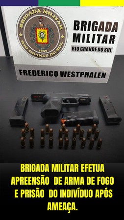 Na noite da quarta-feira, 10 de dezembro, a Brigada Militar através dos policiais militares do 37°BPM, prendeu um indivíduo por ameaça e apreendeu uma arma de fogo em Frederico Westphalen.