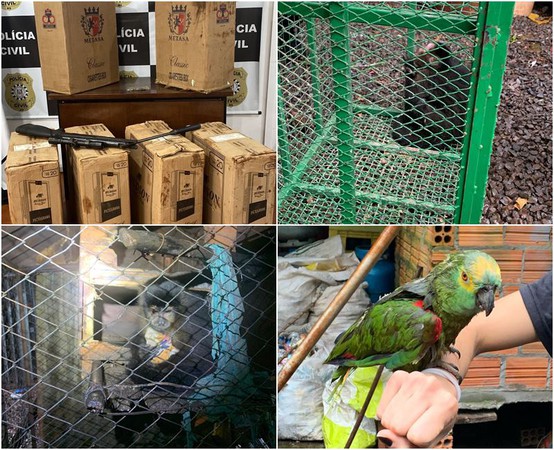 Ação da Polícia Civil também apreendeu munições, cigarros de origem estrangeira e dois animais mantidos em cativeiro