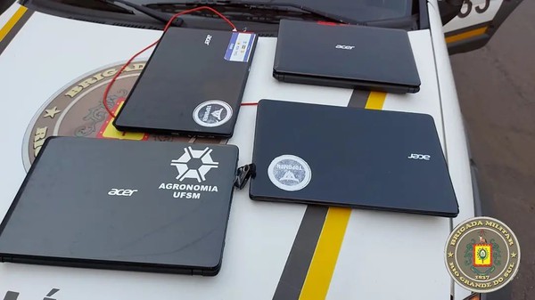 O indivíduo foi flagrado pelos policiais nas proximidades do local e recuperado os quatro notebooks furtados na ação.