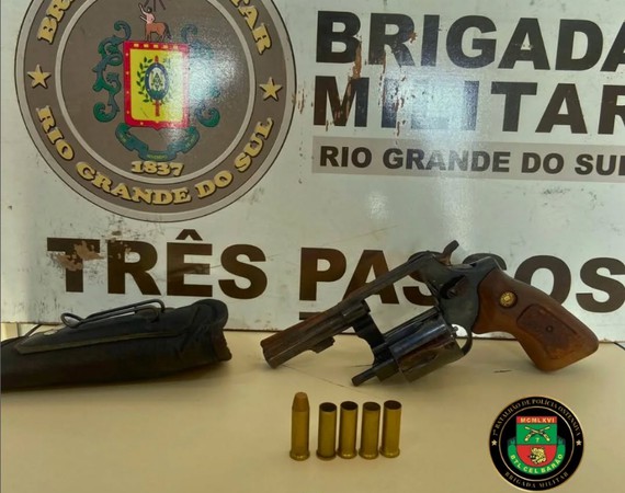 Diante dos fatos, o indivíduo foi preso em flagrante, apreendido um revólver Taurus calibre .38 com uma munição intacta e quatro estojos, sendo apresentado na Delegacia de Polícia.