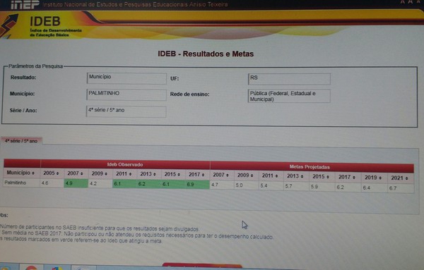 As escolas públicas do município de Palmitinho, nos anos iniciais atingiram a média 6.9, superando a meta projetada que era de 6.2.