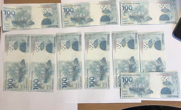 Na ação, foram apreendidas dez cédulas de 100 reais falsificadas
