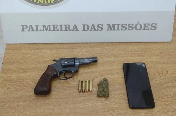 Indivíduo é preso por porte ilegal de arma de fogo e tráfico de drogas em Palmeira das Missões