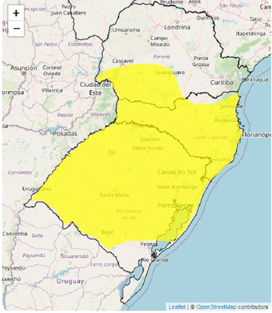 O Instituto Nacional de Meteorologia (Inmet) emitiu na manhã desta terça-feira, 23 de abril, um alerta de tempestade para regiões do Rio Grande do Sul, Santa Catarina e Paraná. O aviso é amarelo, e vale até às 10h de quarta-feira, 24 de abril.