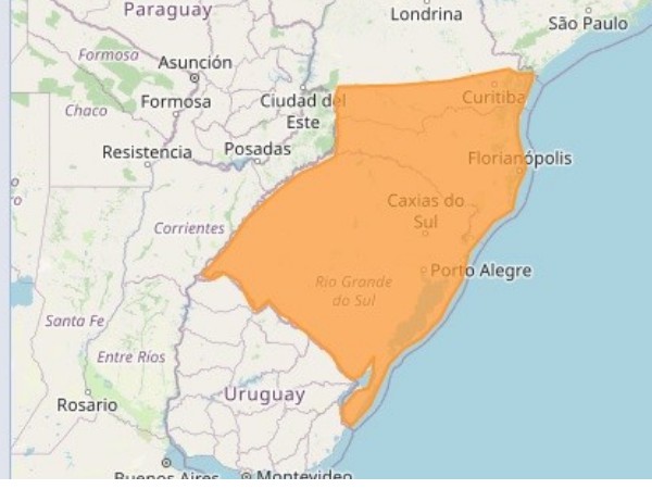 Mais de 900 municípios dos três Estados podem ser atingidos. O alerta é válido para este sábado, 28 de novembro.