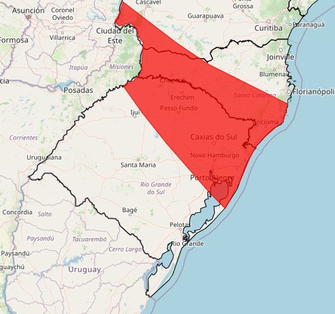 O alerta é valido para os três estado do Sul – Rio Grande do Sul, abrangendo aas regiões norte, nordeste, serra, litoral norte e parte da região metropolitana; Santa Catarina, na parte sul e sudeste do estado com maior incidência atingindo parte do litoral sul e Paraná, atingindo todo o sudoeste, oeste e centro-sul.