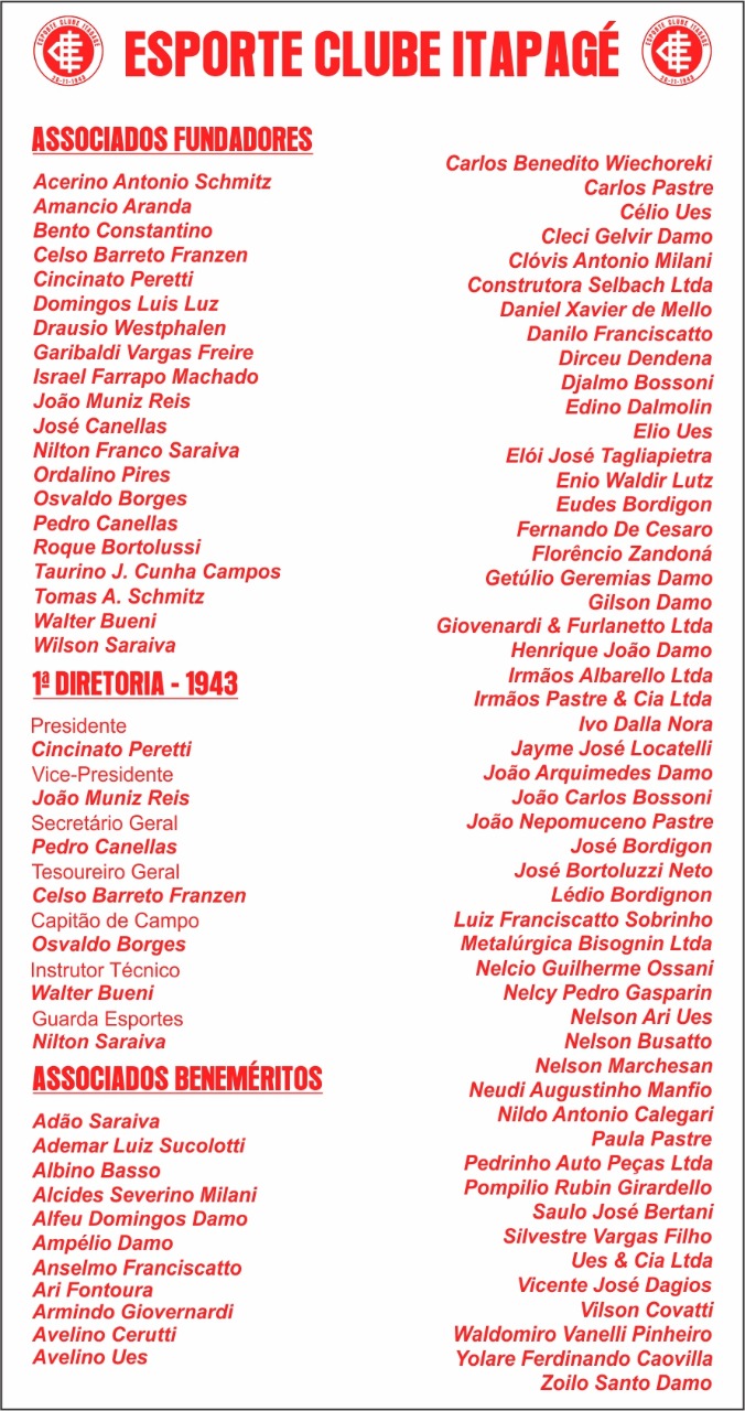 Para celebrar mais esse aniversário o Itapagé fez uma homenagem aos sócios fundadores. Duas placas com os nomes de cada um que fez parte do início da história do clube foram afixadas nas paredes do ginásio para eterniza-los na história do Esporte Clube Itapagé.