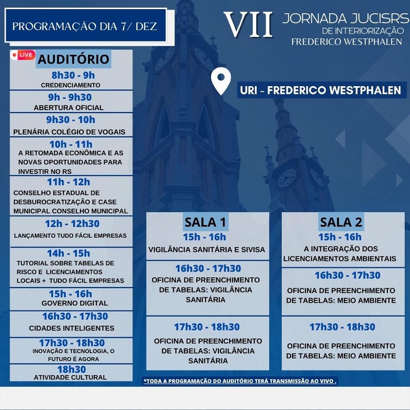 Nos próximos dias 7 e 8 de dezembro, vai acontecer a VII Jornada JucisRS de Interiorização, no auditório da Universidade Regional Integrada (URI-FW).