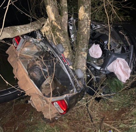Honda Civic trafegava pela rodovia em alta velocidade quando saiu da pista e colidiu contra árvores às margens da estrada