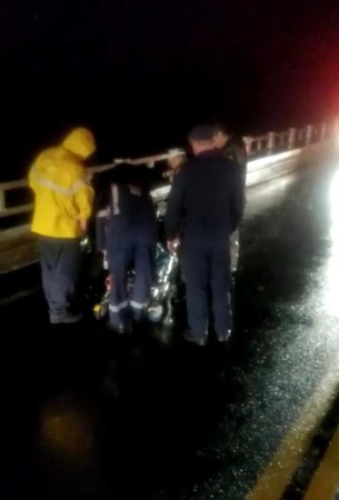 O trabalho foi realizado com sucesso, abaixo de chuva pelas equipes da Brigada Militar, Bombeiros e SAMU.