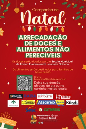 Também são aceitas doações via PIX. O dinheiro será revertido na compra dos doces e alimentos. A chave para doação é tesouraria@leoclubefw.com.br.