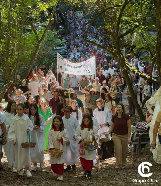Com o tema “Com Jesus e Maria caminhamos em busca da paz”, os fiéis percorreram o trajeto entre a Capela Três Mártires e o Santuário, em um momento marcado por orações e reflexões sobre a paz no mundo. “Essa caminhada é um momento de união do povo em busca da paz e da justiça em nossa sociedade como um todo. Para que a gente se una, louve, agradeça e suplique a Deus, também por aquilo que nos move em oração, esse é sempre o objetivo da romaria e sabemos quantas graças as pessoas nos relatam que conseguiram por interscessão de Maria”, destacou o pároco Leoclides Dalla Nora.