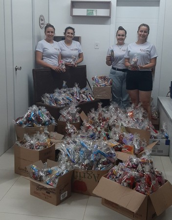 Mais de mil crianças de Palmitinho serão beneficiadas com os doces arrecadados no Natal Solidário. A iniciativa que é organizada pelas amigas Fernanda Silva, Andréia Biguelini, Jaira Deters e Neila Pereira reuniu doações desde outubro para tornar especial o Natal de crianças em vulnerabilidade social do município.
