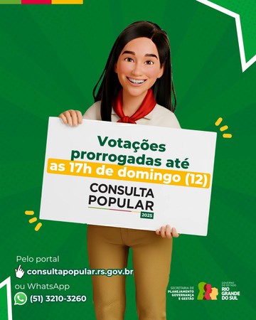 O governo do Rio Grande do Sul prorrogou até domingo, feriado, 12 de outubro, às 17 horas, o prazo de votação da Consulta Popular 2025, orçamento 2026.