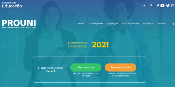 A lista com o nome dos selecionados para o primeiro processo seletivo de 2021, bem como o cronograma do programa, pode ser acessada por meio do site do Prouni.