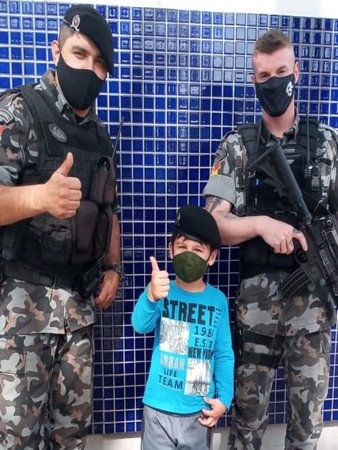 Os policiais também incentivarma o garoto dizendo que pode sim realizar seu sonho e que para isso é necessário estudo, coragem e dedicação.