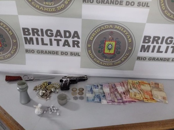 O fato ocorreu na Vila Pedreira, em Frederico Westphalen, após os policiais militares flagrarem a comercialização de drogas entre dois homens e um menor de idade. Na ação foram apreendidos um simulacro de arma de fogo, 14 pedras de crack, uma porção de maconha, R$ 344 em dinheiro e bijuterias diversas recebidas em troca da droga.