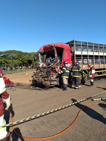 Diel conduzia um caminhão de transporte de suínos de uma empresa de Palmitinho e colidiu em outro caminhão da mesma empresa. O condutor morreu no local do acidente.