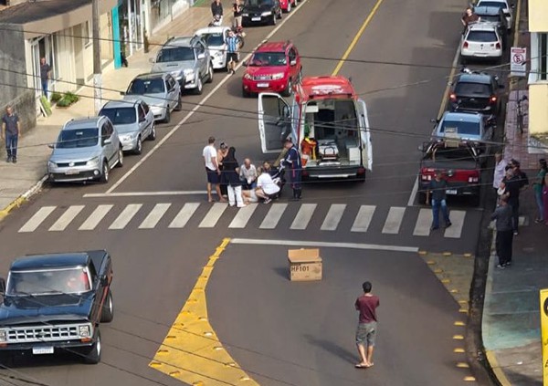 Mulher é atropelada na faixa de pedestres no centro de Frederico Westphalen