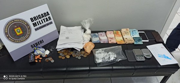 Uma mulher de 19 anos de idade, foi presa por tráfico de drogas em Seberi, a guarnição efetuou a abordagem da jovem e em revista pessoal, foram apreendidos duas gramas de maconha, 253 gramas de cocaína, R$ 3.361,25, três telefones celulares, duas balanças com precisão para pesar os entorpecentes, papel alumínio e sacola plástica, matéria prima para embalagem da droga.