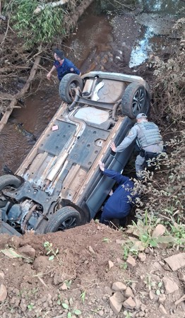 Quando os policiais chegaram ao local, encontraram o veículo virado dentro da água, com a vítima já sem sinais vitais no interior do carro. Um enfermeiro que também atendia a ocorrência confirmou o óbito no local.