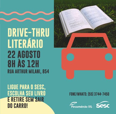 Para ajudar quem pretende colocar a leitura em dia durante o período de distanciamento social, o Sesc Frederico Westphalen preparou uma ação especial o drive-thru literário que acontece neste sábado 22, das 8 às 12 horas.
