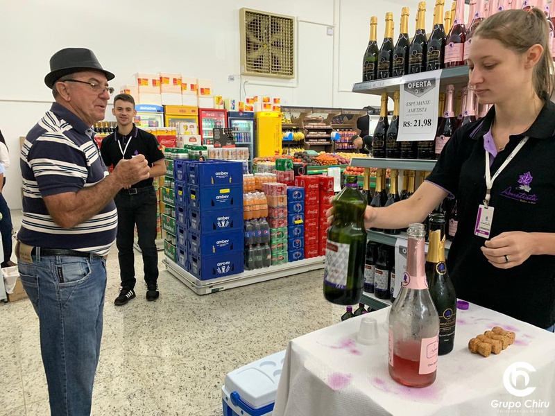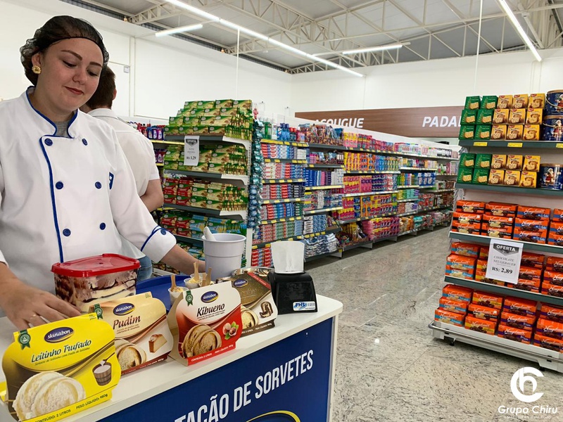 Empresas aprceiras estão fazendo degustação de produtos neste dia de inauguração.