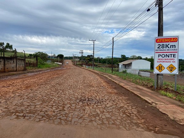 A sinalização alerta os condutores sobre as condições da via, informando que há 28 km de estrada de chão e ponte com peso máximo suportado de 10 toneladas. A medida tem como objetivo reforçar a segurança e a orientação aos motoristas que utilizam o trecho, principalmente caminhoneiros e veículos de grande porte.