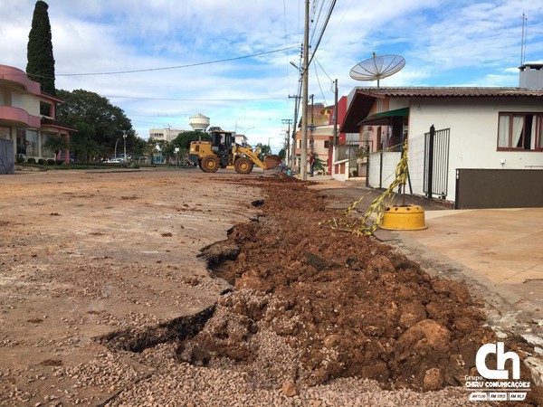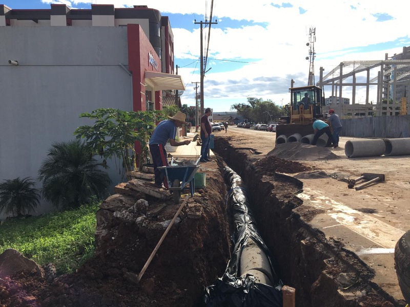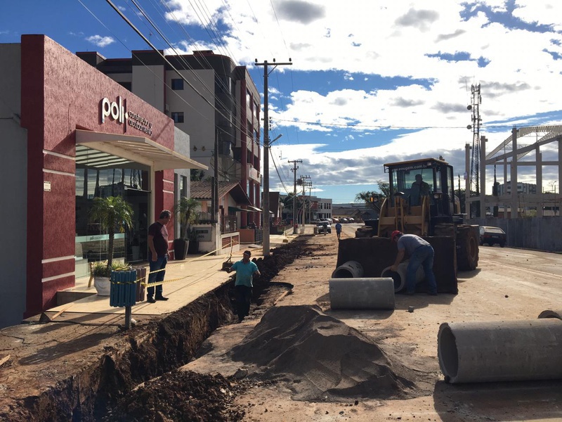 Obras de tubulação estão sendo realizadas na Rua Santos Dumont