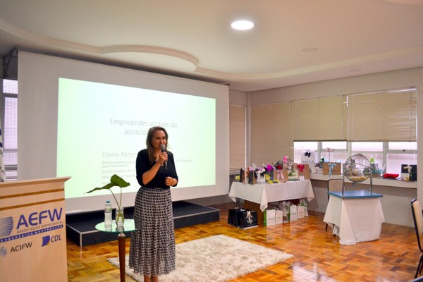 Eliana Reiter Estefano contou um pouco da trajetória da empresa Erva Daninha, que possui mais 30 anos de história, em que é sócia-proprietária. Também falou sobre a sua trajetória no associativismo, sua gestão na presidência na CDL e a Associação Empresarial de Maravilha/SC e sua atuação no Núcleo da Mulher Empresária desde sua fundação em 2012, tendo sido a segunda coordenadora do núcleo.