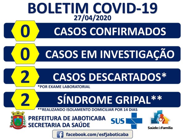 Foi divulgado pela Secretaria Municipal de Saúde de Jaboticaba, na noite desta segunda-feira, 27, o resultado do exame para Covid-19, de um caso suspeito em que o paciente acabou falecendo na madrugada de sábado, 25. O exame feito pelo Laboratório Central de Saúde Pública do Rio Grande do Sul (Lacen), deu negativo.