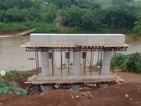 A reconstrução da ponte sobre o rio da Várzea, que ligará a área urbana de Rodeio Bonito ao distrito de Saltinho e outras comunidades vizinhas, segue em andamento e deve atingir 35% de execução até o fim deste ano. A prefeitura de Rodeio Bonito afirma que a obra avança nos trabalhos, com a concretagem de mais um bloco, concentrando os trabalhos fora do leito do rio, no lado da linha Santa Ana.