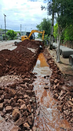 Obras em via pública rompem rede de água em Rodeio Bonito