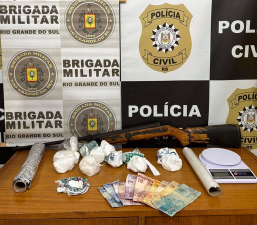 No total, foram apreendidos 1,800 quilo de maconha, 1,173 quilo de cocaína — somatório das apreensões realizadas —, três balanças de precisão, quantia em dinheiro e uma espingarda artesanal.