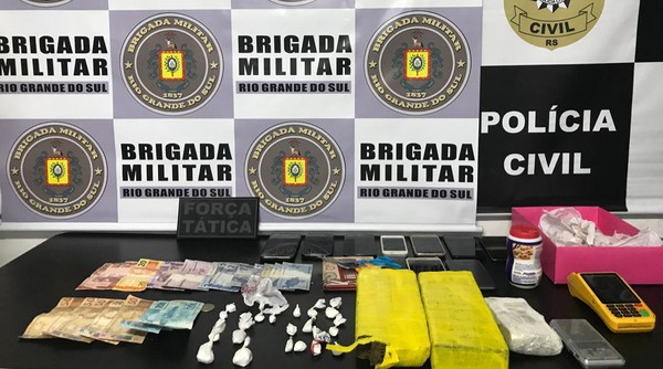 Foram apreendidos drogas, dinheiro, máquina de cartão e celulares