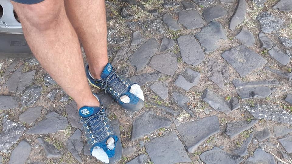 Boa parte do percurso Bonafé fez alternando três pares de tênis que havia levado na viagem, porém, de acordo com ele, com os dias os dedos começaram a ficar doloridos e ele precisou cortar parte do tênis, usando esse mesmo par até o fim da caminhada. “Peguei alguns dos dias mais quentes, chegou aos 40°C e no asfalto parece ainda mais quente, então os dedos doíam. O corpo, por sua vez, parece que foi acostumando, assim os primeiros dias foram mais difíceis que os últimos”, relatou.