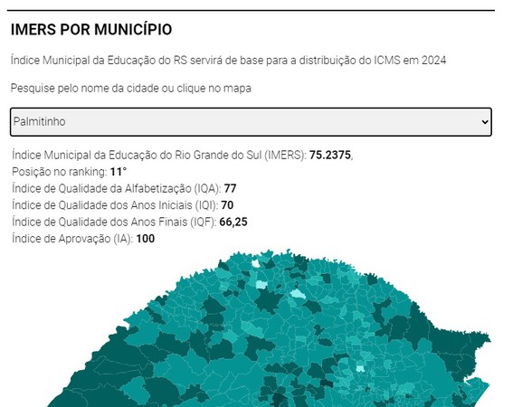O Sistema mostra a posição de cada município gaúcho no ranking que mede a qualidade da educação, após a realização de provas aplicadas em alunos de cada educandário do Rio Grande do Sul.