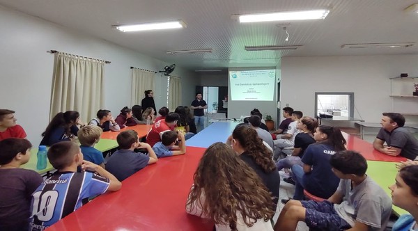 As ações de abertura das atividades trataram da Alimentação Saudável com a Nutricionista Fernanda Colombelli e com os integrantes do Departamento Municipal do Meio Ambiente, Alex Negrini e Marciane Fleck. Na ocasião ele relataram sobre a importância da separação do lixo e compostagem.